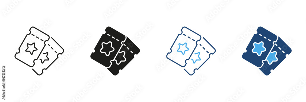 Two Event Tickets With Stars Line And Solid Icon Set. Entertainment, Admission, And Ticketing System Outline And Silhouette Symbol Collection. Concert And Movie Passes. Isolated Vector Illustration #1927235242