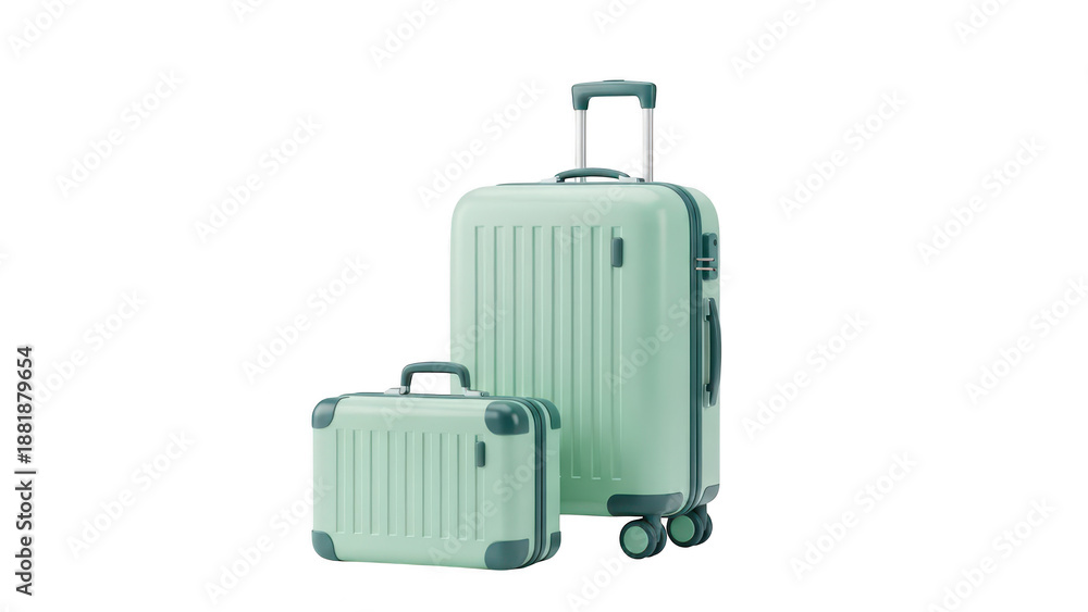 Two green suitcases with wheels on transparent background for travel #1881879654
