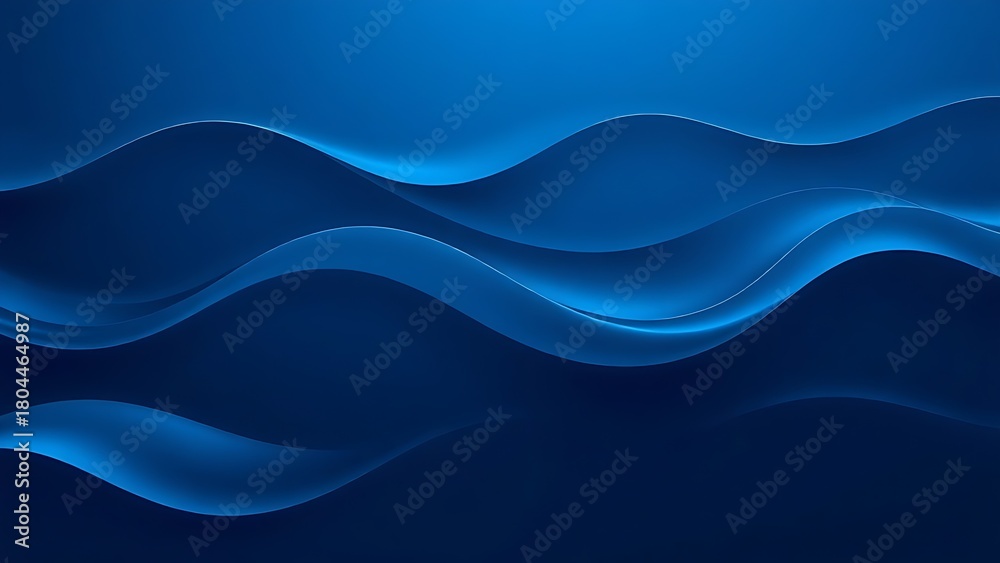 unanimity. Flowing wave patterns in deep blue with elegant curves and smooth gradients, minimalist aquatic scene. travel magazines, destination branding, designed for travel destination branding. #1804464987