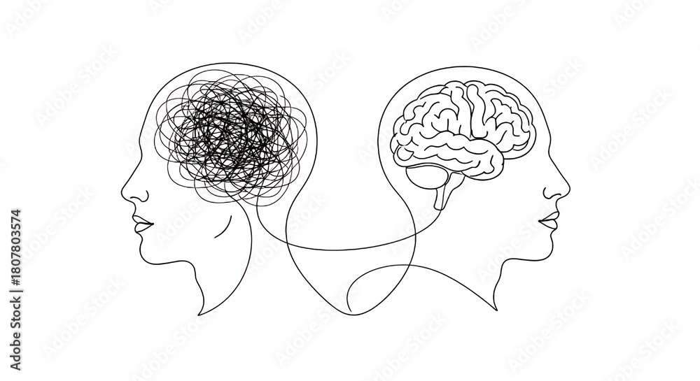 Untangling thoughts unlocks clarity, therapeutic connection of minds, mental health support, clean modern concept #1807803574