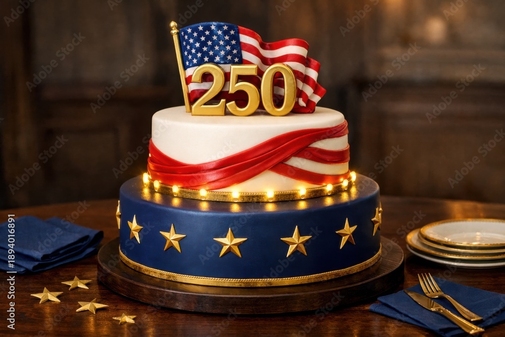 USA 250 Anniversary Cake with American Flag Topper #1894016891