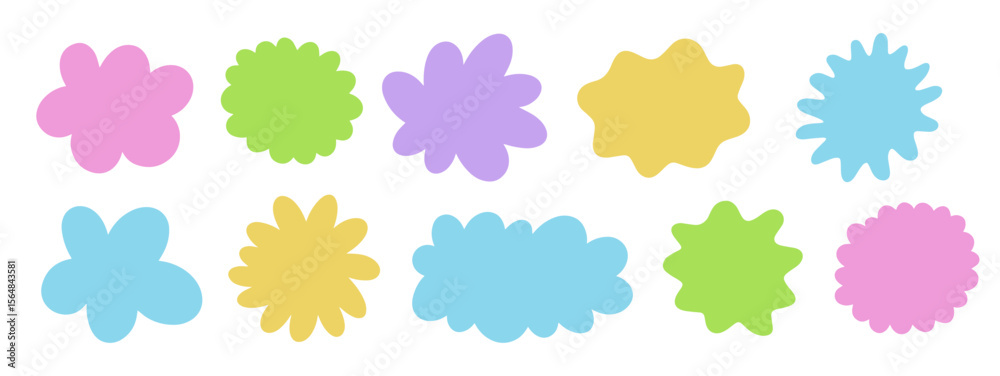 Various cloud blotch in flat style. Flower funny blobs. Simple and playful doodle flower shape #1564843581