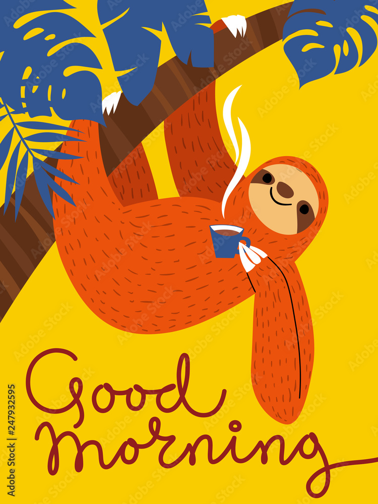 Vector card with sloth and coffee cup #247932595