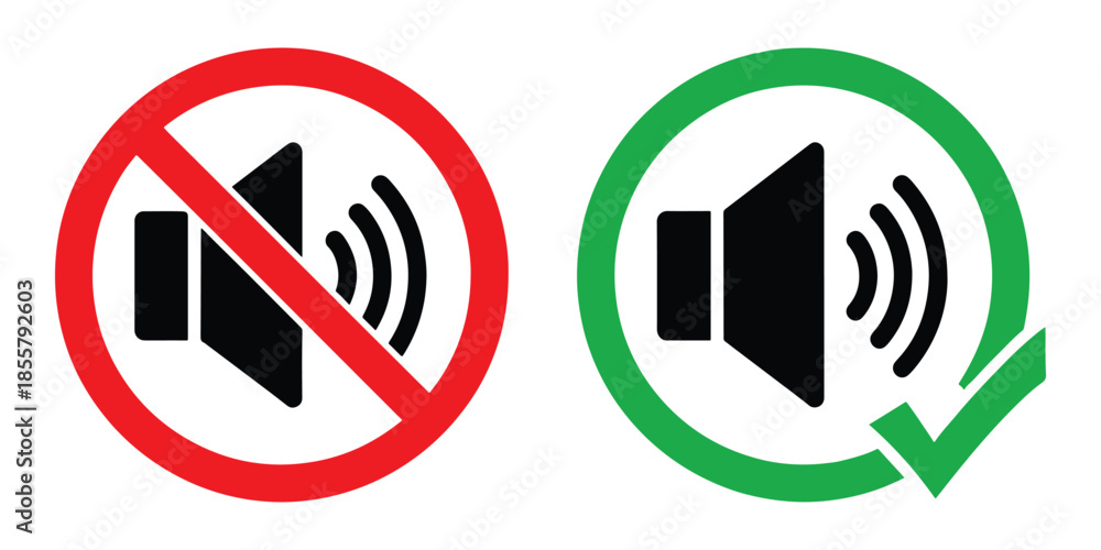 Vector icons of sound on and off with checkmark isolated on white background #1855792603