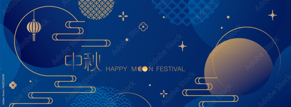 Vector illustration banner for Mid-Autumn festival.. Translation: Mid-autumn festival. #1645216918