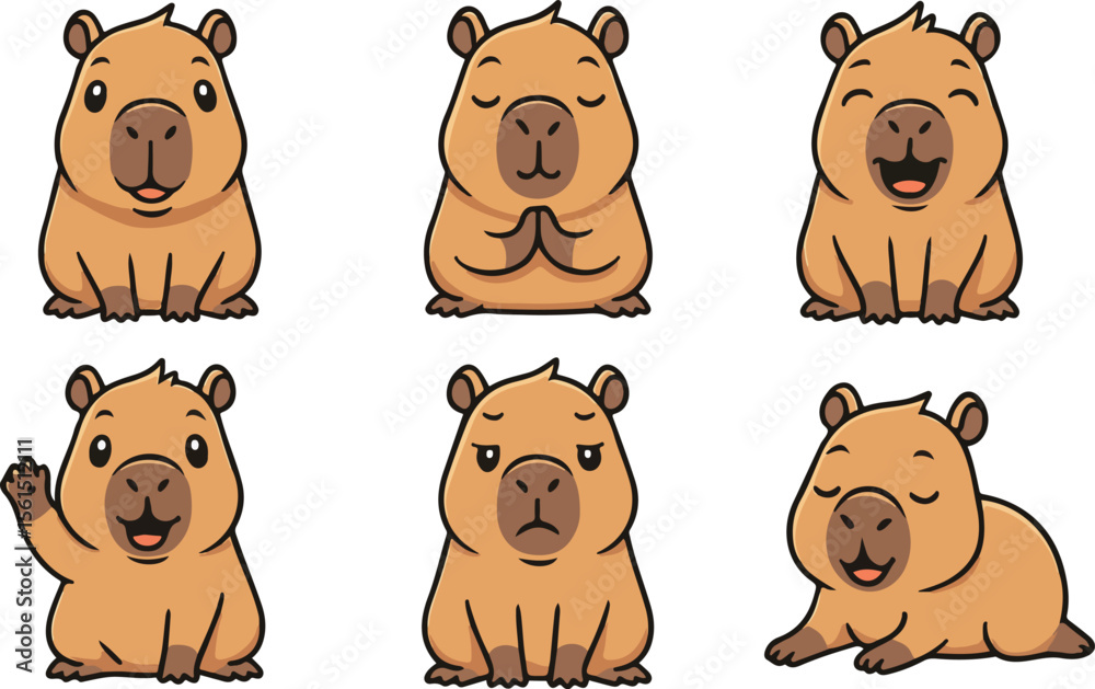 vector illustration of capybara funny cute cartoon mascot character cartoon with 6 poses #1561512111