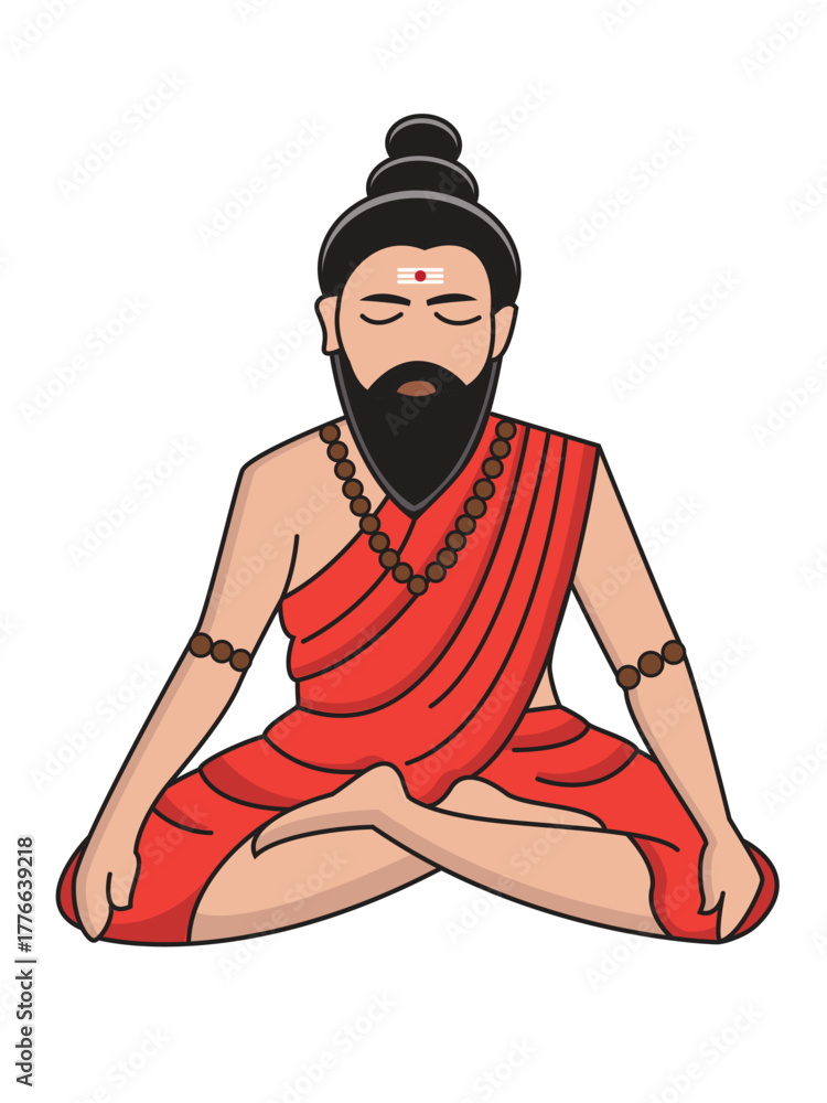 Vector Illustration of Indian Rishi Muni or ancient yogi sitting in meditation #1776639218