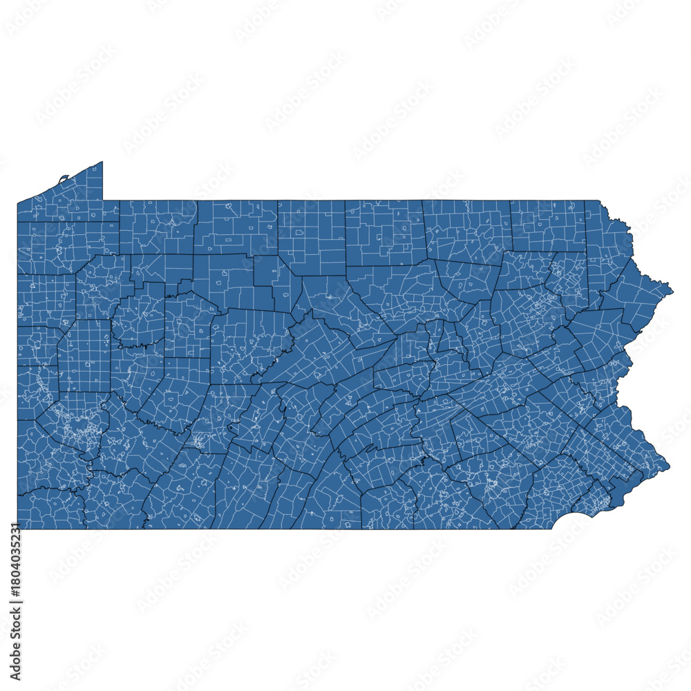 Vector outline map of Pennsylvania state divided into counties and townships #1804035231