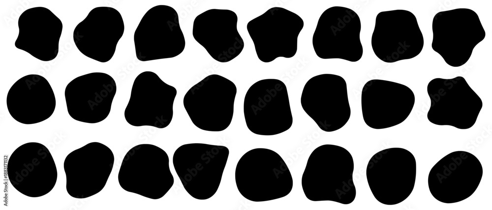 Vector set of 24 black organic blob shapes abstract, irregular silhouettes patterns, textures and modern minimalist design elements. #1883171132