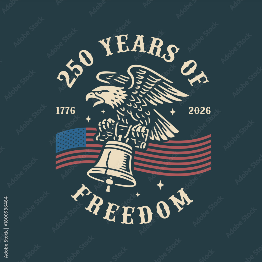 VECTORS. Design for the 250 anniversary of the Independence of United States of America (4th of July). Eagle, Liberty bell, vintage, t-shirt design, logo, coin #1800936484