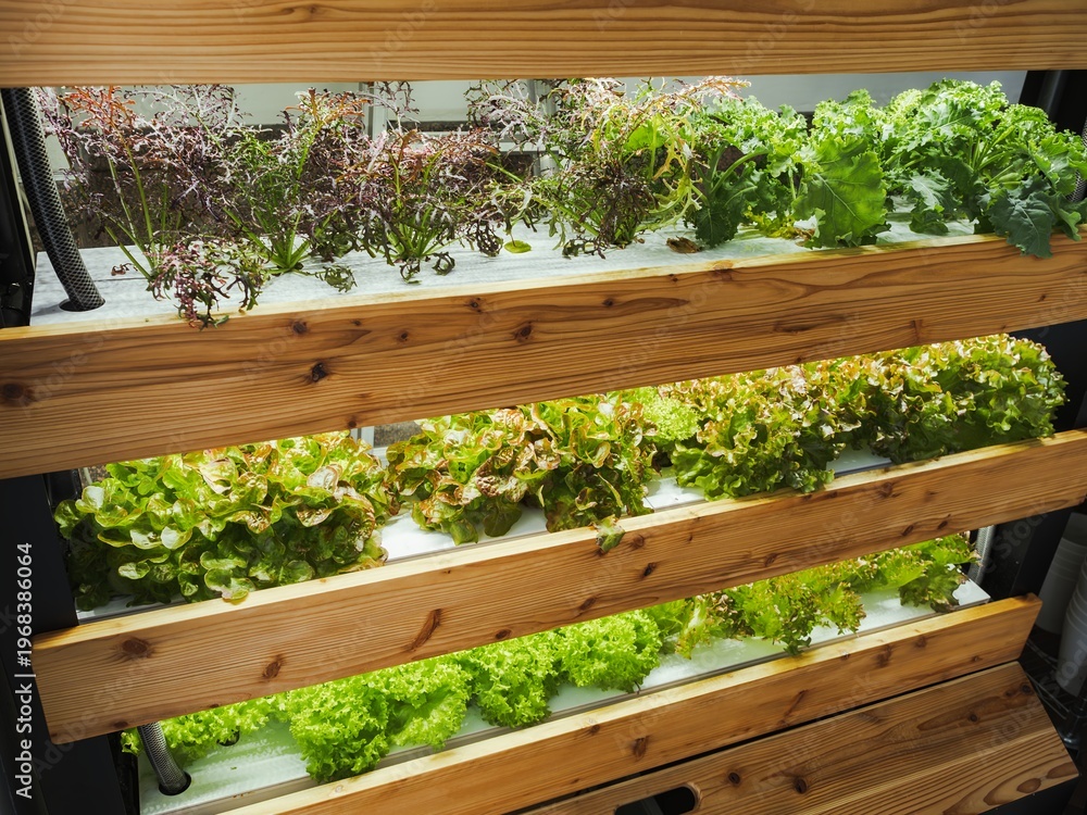 Vegetable Plant row Grow with Led Light Indoor Salad Farm Agriculture Technology #1968386064