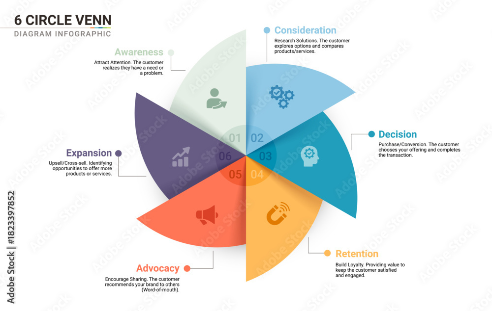 Venn diagram infographic origami paper windmill template for business 6 options presentation with icon elements template #1823397852