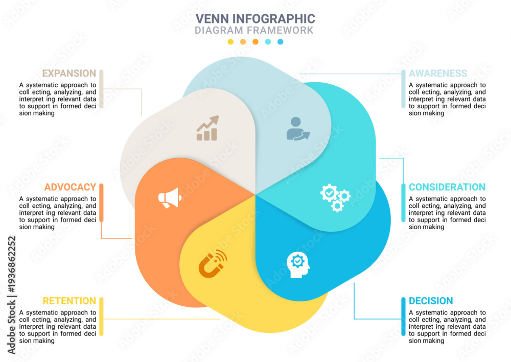Venn diagram infographic template for business 6 options presentation with icon elements diagram template #1936862252