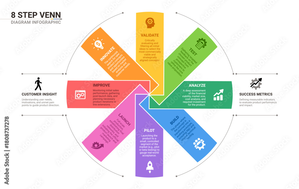Venn diagram origami infographic template for business 8 options presentation with icon elements template #1808737278