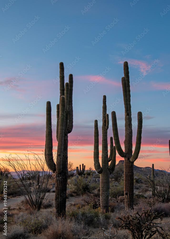 Vertical Ratio View Of Saguaro Cactus At Sunset Time In Phoenix AZ area. #1968775252