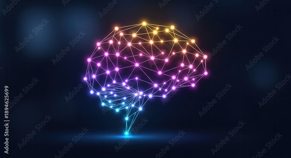Vibrant digital brain network symbolizing advanced artificial intelligence and profound thought #1894625699