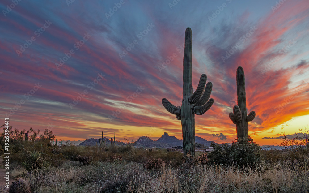 Vibrant North Scottsdale Arizona Sunset Landscape With Cactus #1926994411