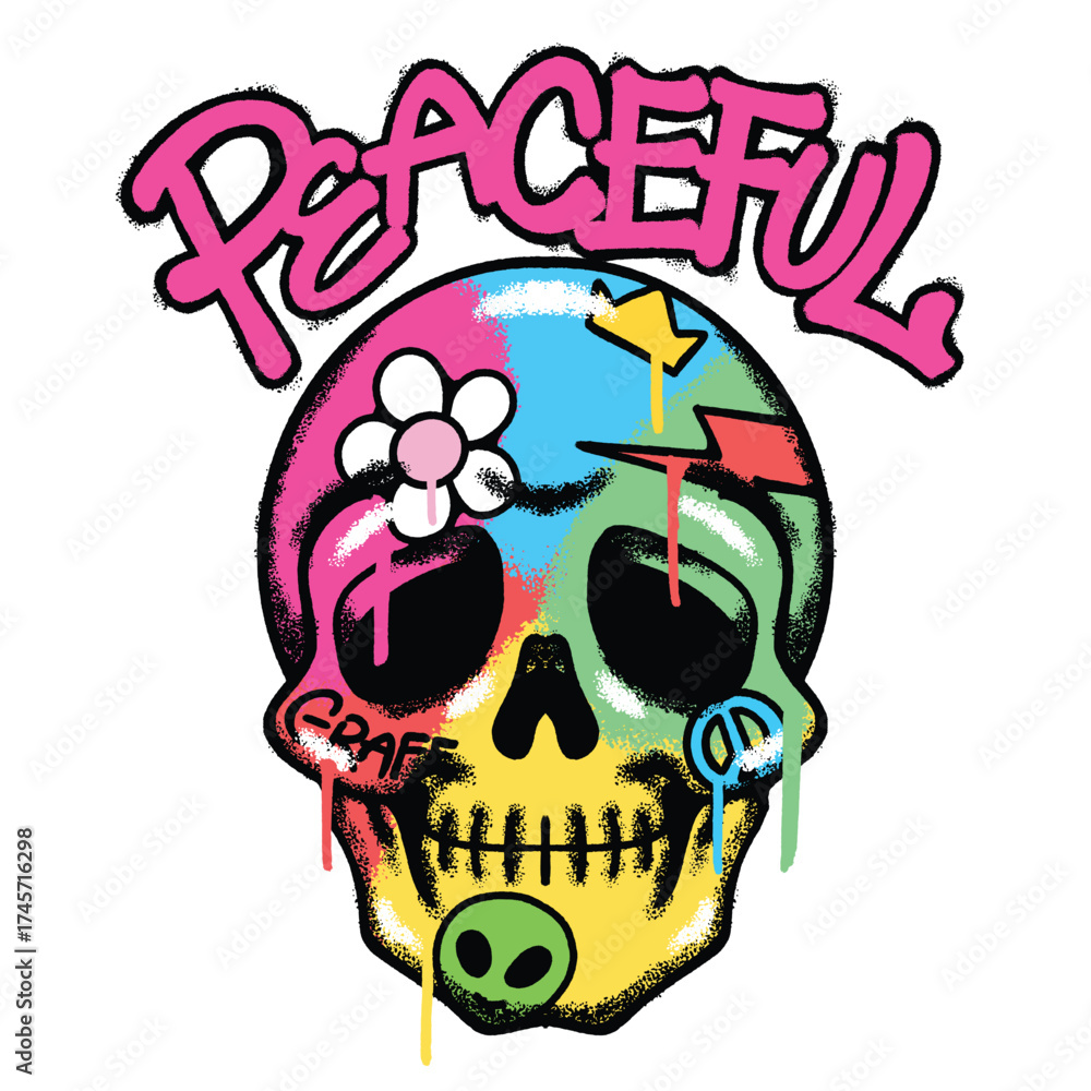 Vibrant Skull Rainbow hand drawn tshirt illustration #1745716298