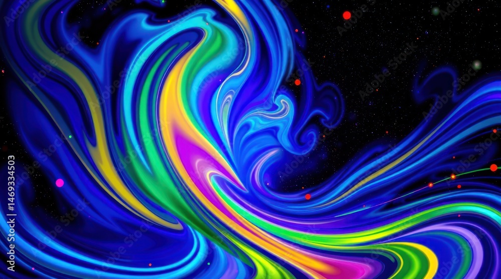 Vibrant, swirling abstract artwork with neon colors against a dark, speckled background #1469334503