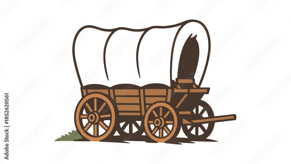 Vintage covered wagon on a grassy hill, evoking a sense of historical travel and exploration #1852620561