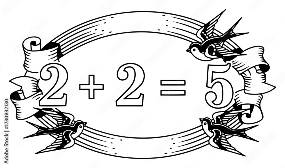 Vintage Ornamental 2 Plus 2 Equals 5 with Swallow Ribbons Vector #1730932130
