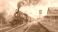 Vintage steam train arriving at rustic railway station with water tower #1074771897