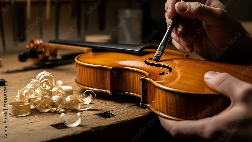 Violin Maker Crafting Instrument with Precision. #1916557500