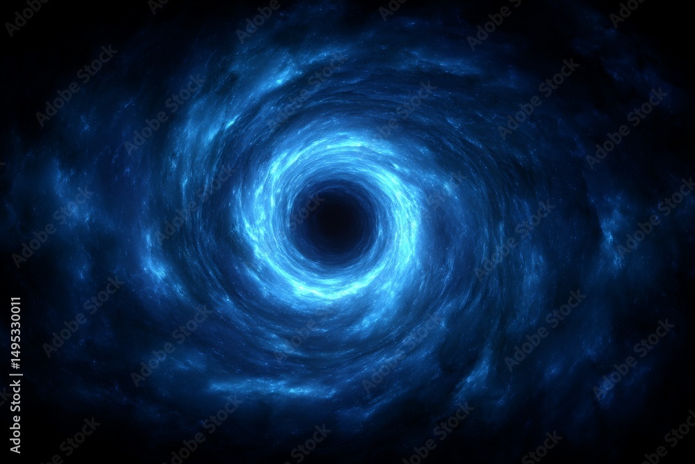 Vivid representation of a cosmic vortex with glowing blue hues and dark center in deep space #1495330011