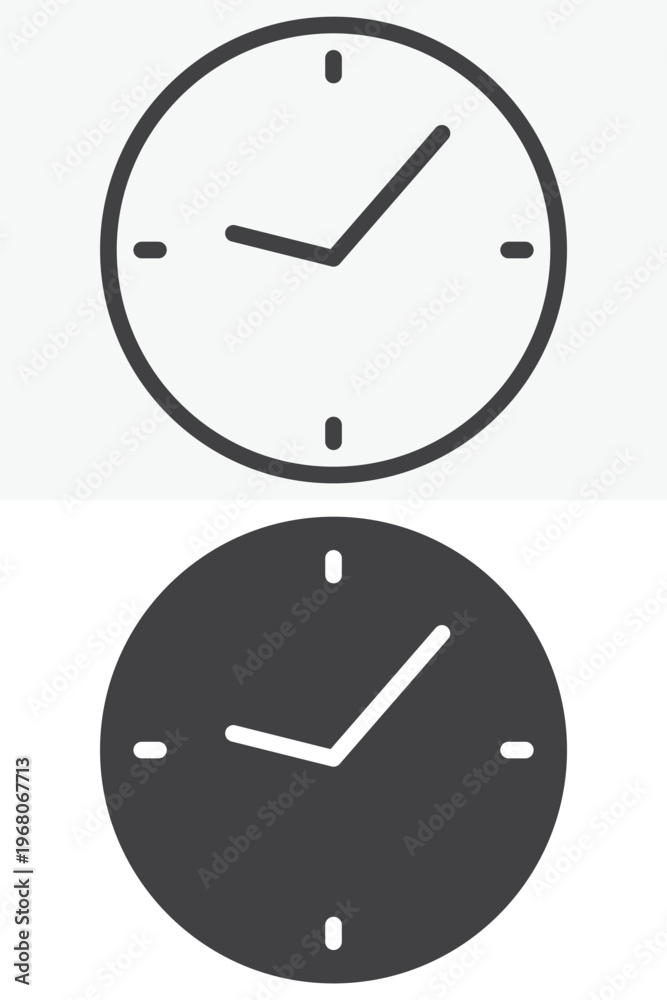 Wall Clock icon in line, outline and solid style. Editable stroke vector sign and symbol set for time use, with wall clock icon in simple versions. #1968067713