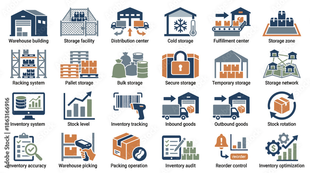 Warehouse and Logistics Icons Set A Comprehensive Collection of Storage and Inventory Management Symbols. EPS Editable #1863166916