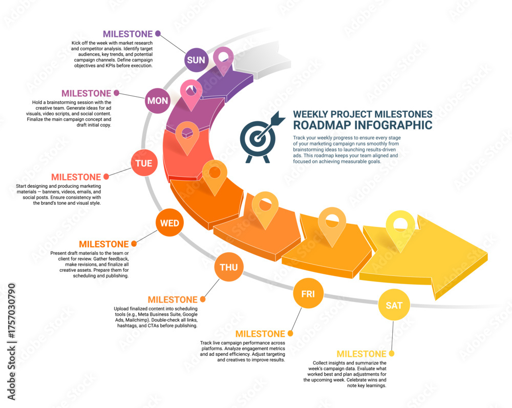 Weekly Project Milestones Roadmap Infographic template #1757030790