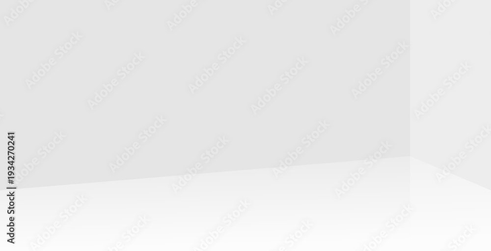 White empty room. Clean, light walls are reflected in smooth surface of floor. Simple uniform background for interior design. Blank corner of studio. #1934270241
