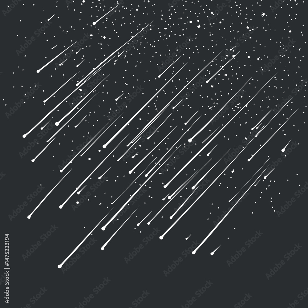 White meteor shower streaks falling against a dark night sky filled with stars and cosmic dust #1475223194