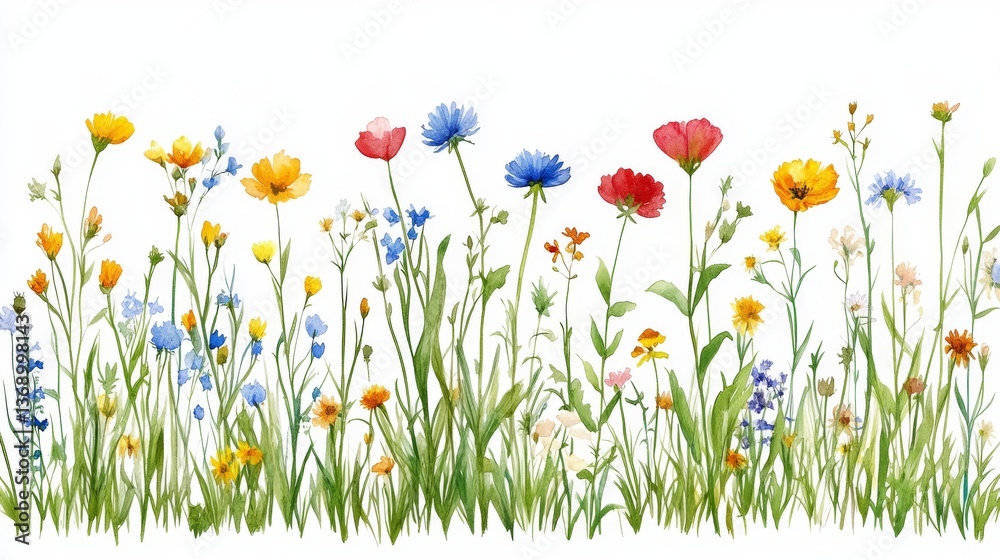 Wildflowers, delicate and dainty, create a border with isolated copy space #1368998143