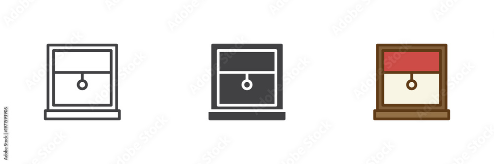 Window with louvers icon set in line, outline and solid styles. Vented window icon with editable stroke vector sign, ventilation symbol, home element icon. #1971593906