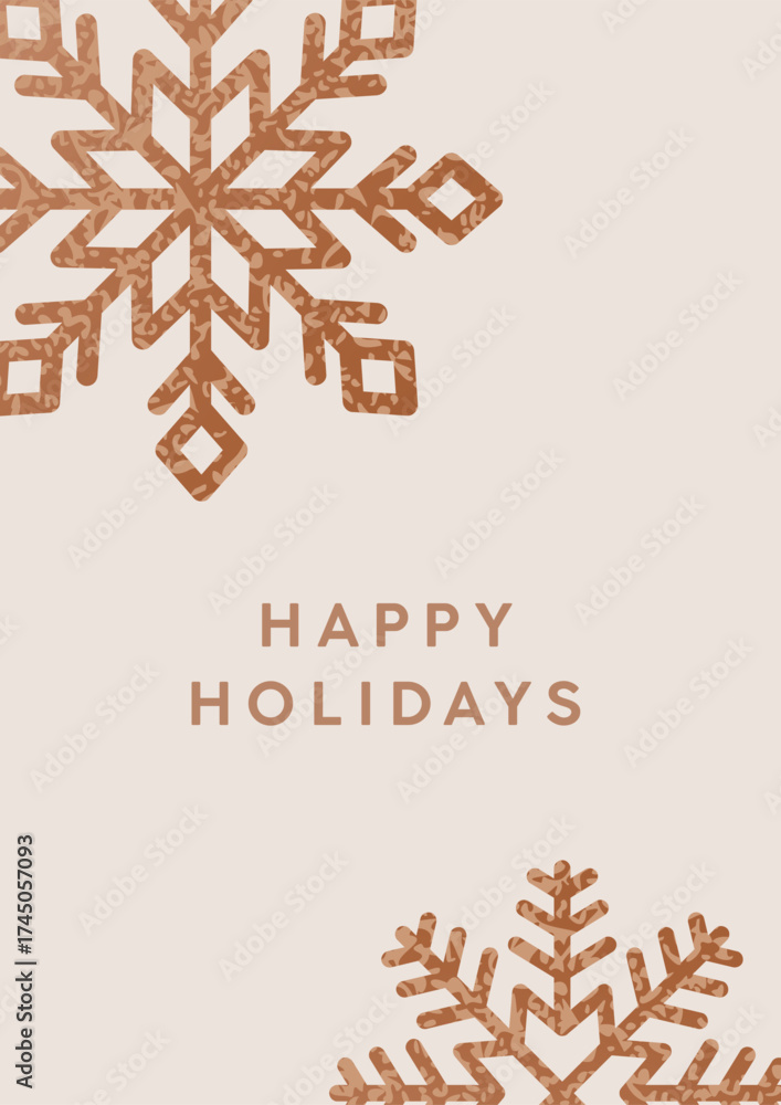 Winter holiday greeting card. Festive design with snowflake crystals and typography. Snow flakes, minimalist style poster, postcard background for Christmas and New Year. Flat vector illustration #1745057093