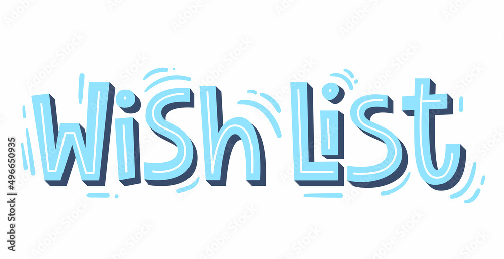 "Wish list" lettering. Modern hand-written text. Sticker for planner. Bright "Wish list" text. Planning concept. #496650935
