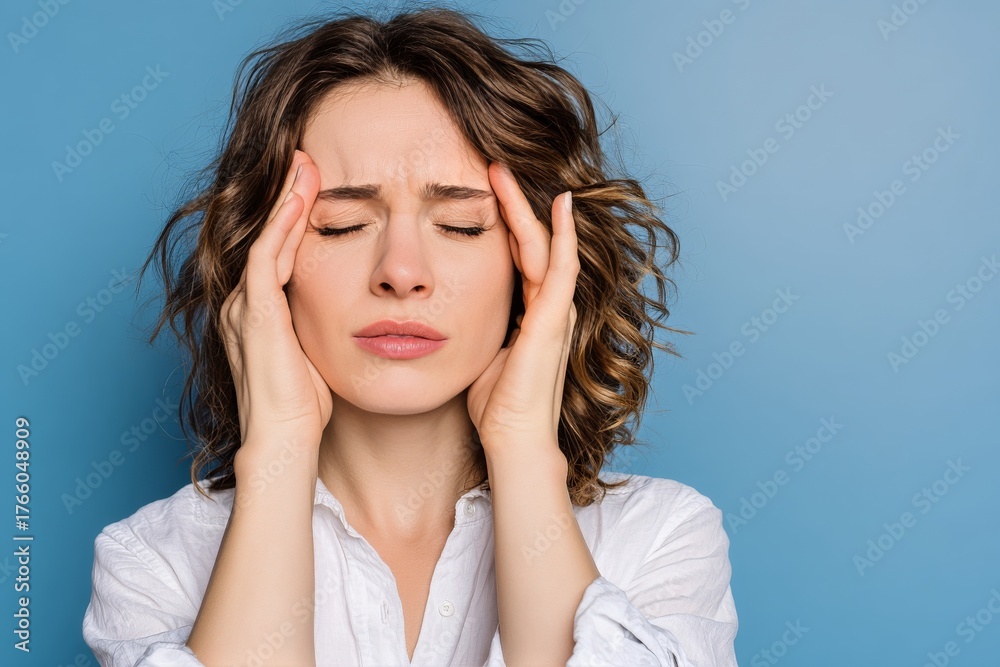 Woman Experiencing Stress and Tension Relief Techniques Indoors During the Day #1766048909