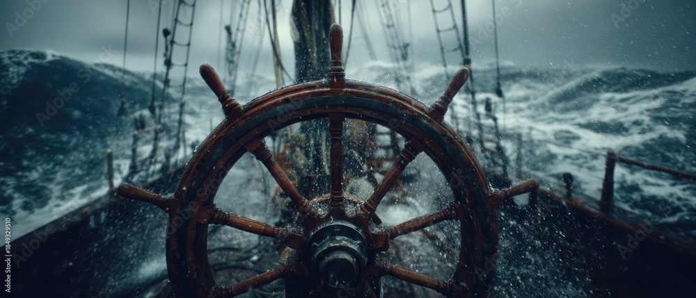 Wooden ships wheel in stormy ocean #1849329510