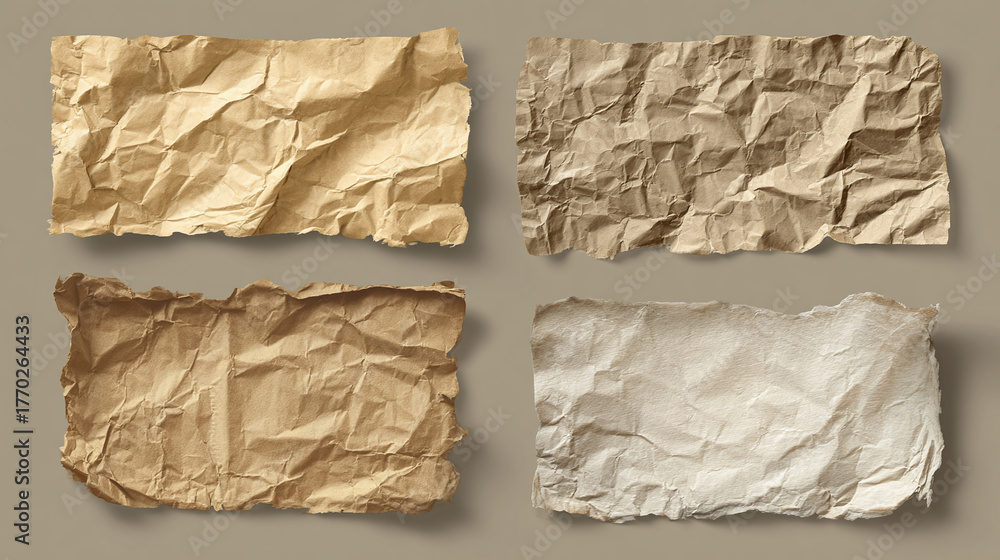 Wrinkled paper with torn edges in different shades of brown. The crumpled texture creates a sense of age and distress #1770264433