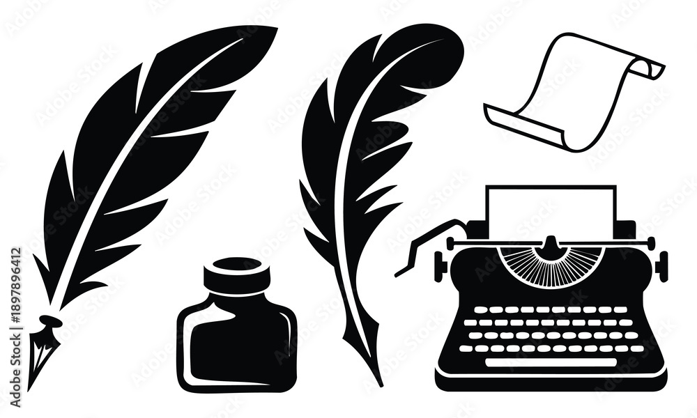 Writing and literature icons for World Book Day silhouette set bundle #1897896412