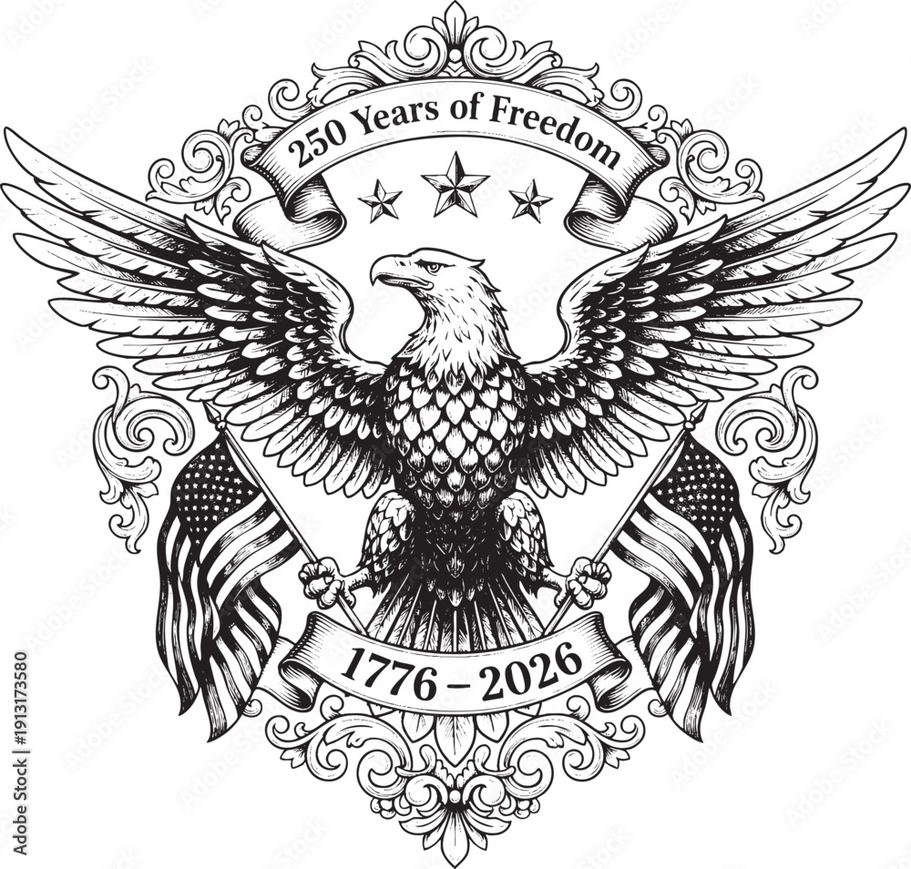 250 Years of American Freedom Retro Woodcut Vector Illustration #1913173580