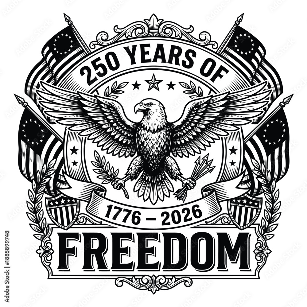 250 Years of American Freedom Vintage Eagle Engraving 1776–2026 #1885899748