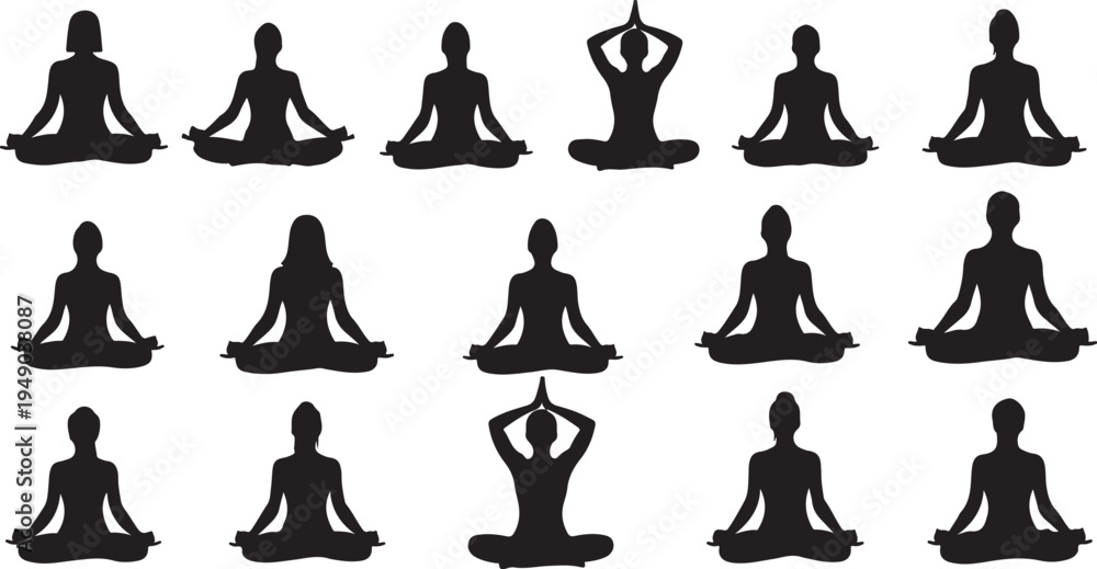 Yoga poses in various sitting positions and meditation styles #1949038087