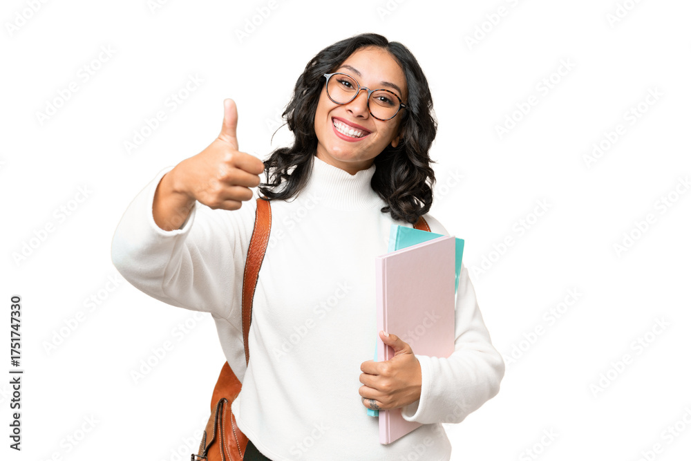 Young Argentinian student woman over isolated background with thumbs up because something good has happened #1751747330