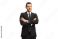 Young busniessman wearing a black suit and posing with arms crossed #416754488