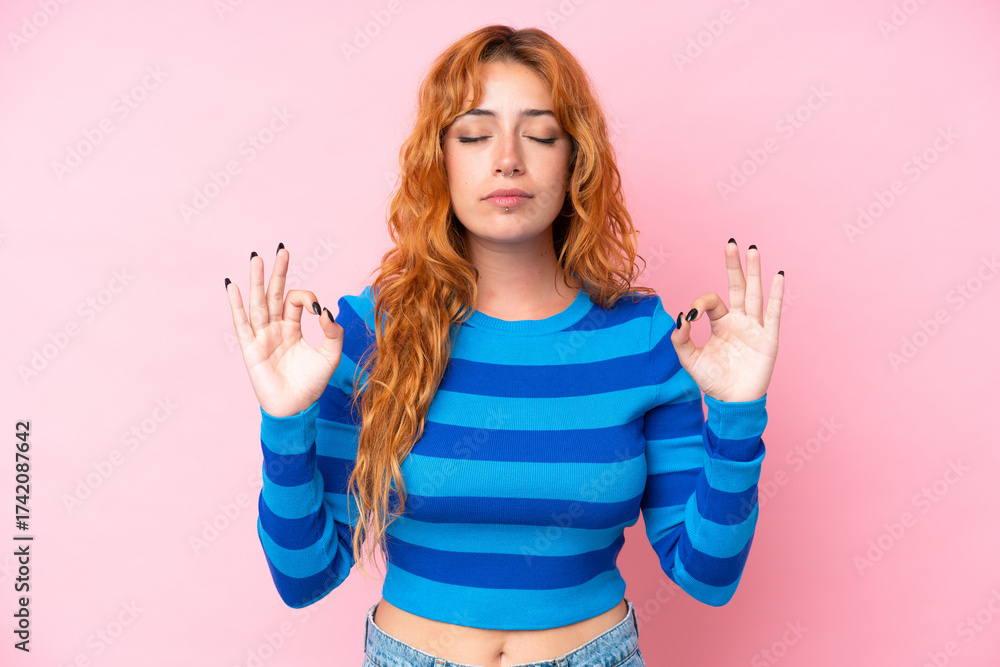 Young caucasian woman isolated on pink background in zen pose #1742087642