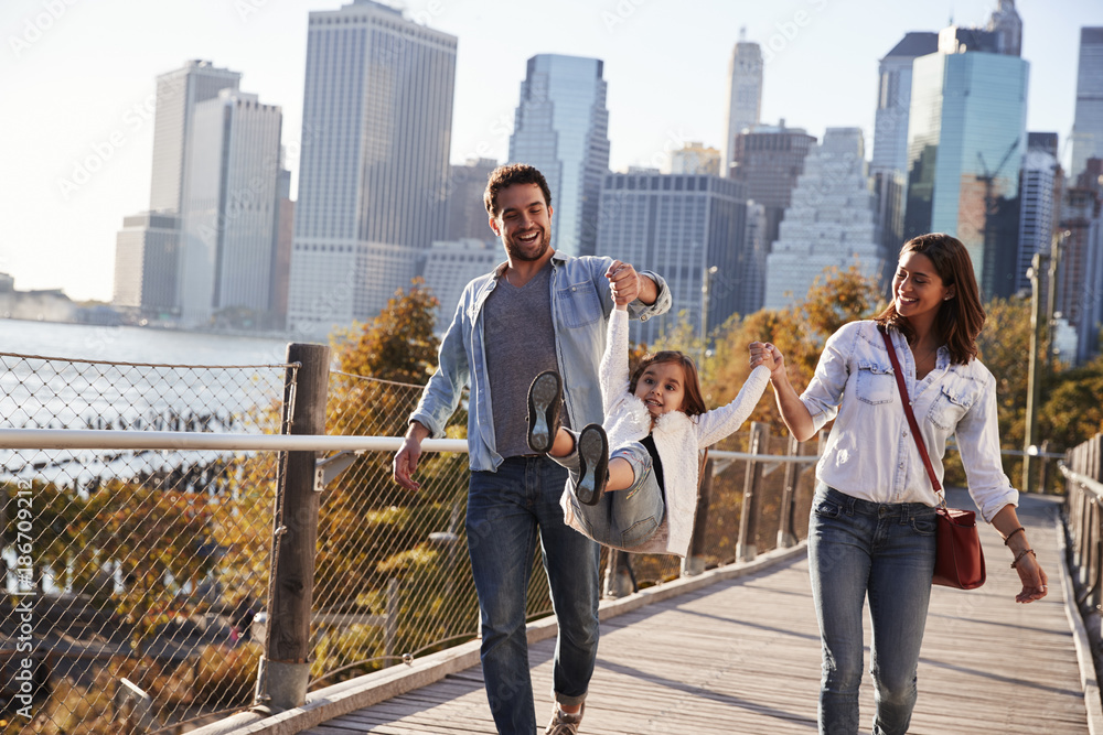 Young family with daughter taking a walk on footbridge #186709212