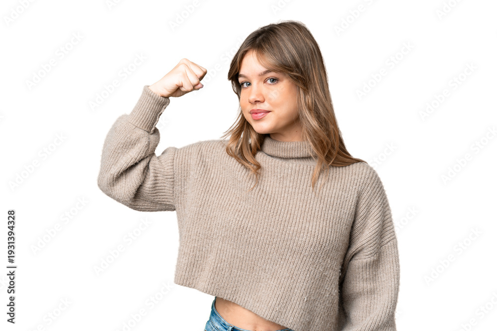 Young girl over isolated chroma key background doing strong gesture #1931394328