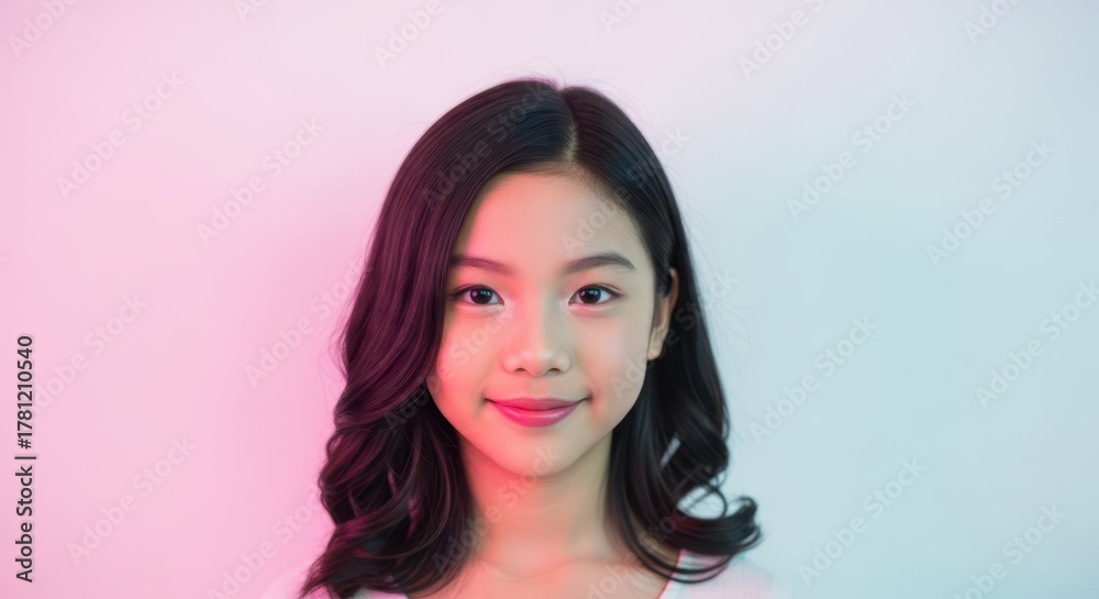 Young Girl with Natural Curly Hair Smiling Against Pastel Background #1781210540